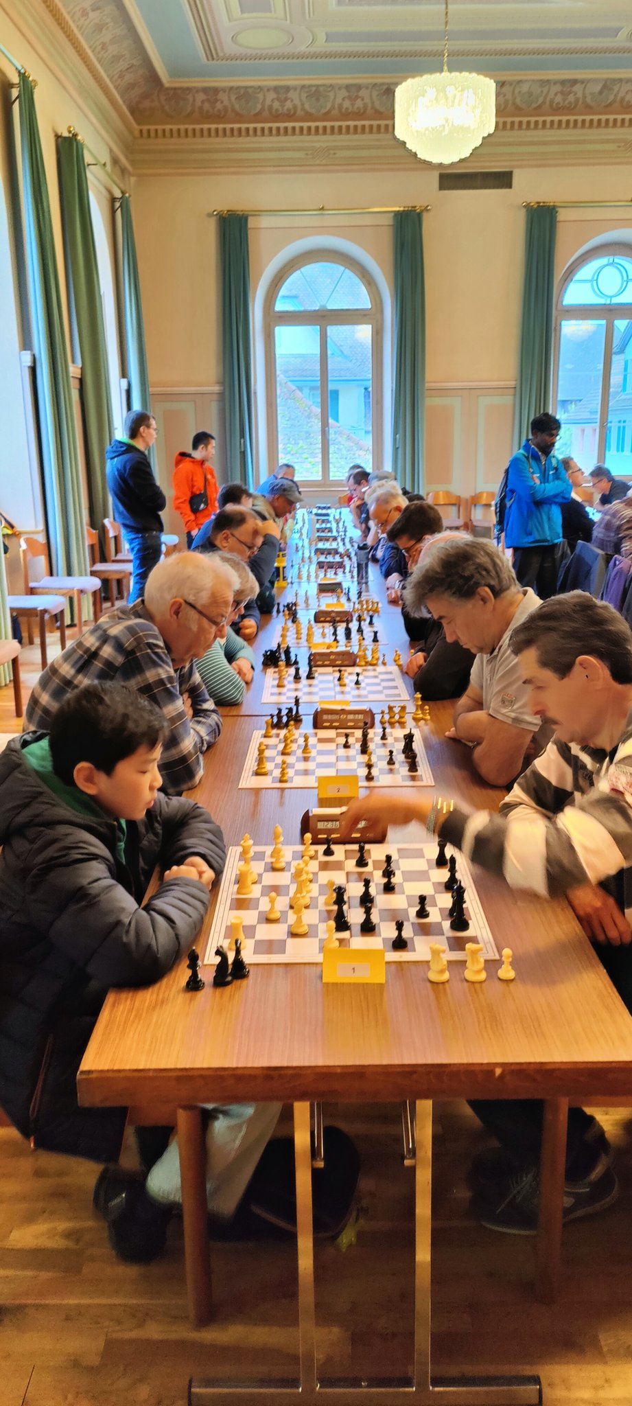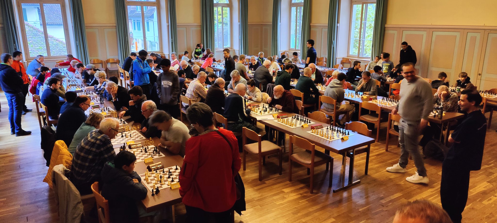 Es war ein ereignisreicher Tag im wunderschönen alten Gemeindesaal in Lenzburg. Die ersten Helfer begannen schon vor sieben Uhr mit dem Einrichten. Viertel vor neun eröffnete Clubpräsident Sandro Wächter den offiziellen Teil mit einer kurzen Ansprache, Hanspeter Schürmann tat dasselbe als Vertreter des Schachverbandes Aargau und Andreas Schmid, Stadtrat von Lenzburg, überbrachte Grussworte der Gastgebergemeinde an die grosse Teilnehmerschaft. Dann ging es los mit dem eifrigen Kampf um Felder und Figuren.